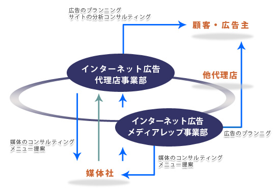 私たちはインターネットのメディア事業を母体とし広告代理事業・公式サイト運営事業を手がけております。弊社は過去の実績をデータベース化し、最適なプロモーションプランを立案することが可能です。弊社が取り扱う数百に及ぶ豊富な広告媒体の中から、貴社の商品・サービスに合ったメディアプランを立案しクライアント様のビジネスをサポートを致します。