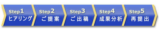 広告宣伝費の費用対効果を最大化するため、まずは広告主の出稿目的を確認、広告出稿の成果点を定めます。目標と成果点を踏まえ、広告出稿媒体を選定し、ご提案いたします。提案内容と出稿目的にズレがないかどうかすり合わせをし、広告主様のご確認を得たうえで出稿手続きを行います。 広告出稿後、字善意定められた成果点との差異を確認し、差異があればその要因を分析し、レポートを作成いたします。ご要望があればより精度の高い広告宣伝プランを再提案することも可能です。